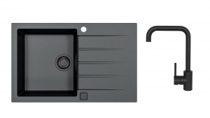 kuchynský SET : čierny granitový drez s čiernou batériou