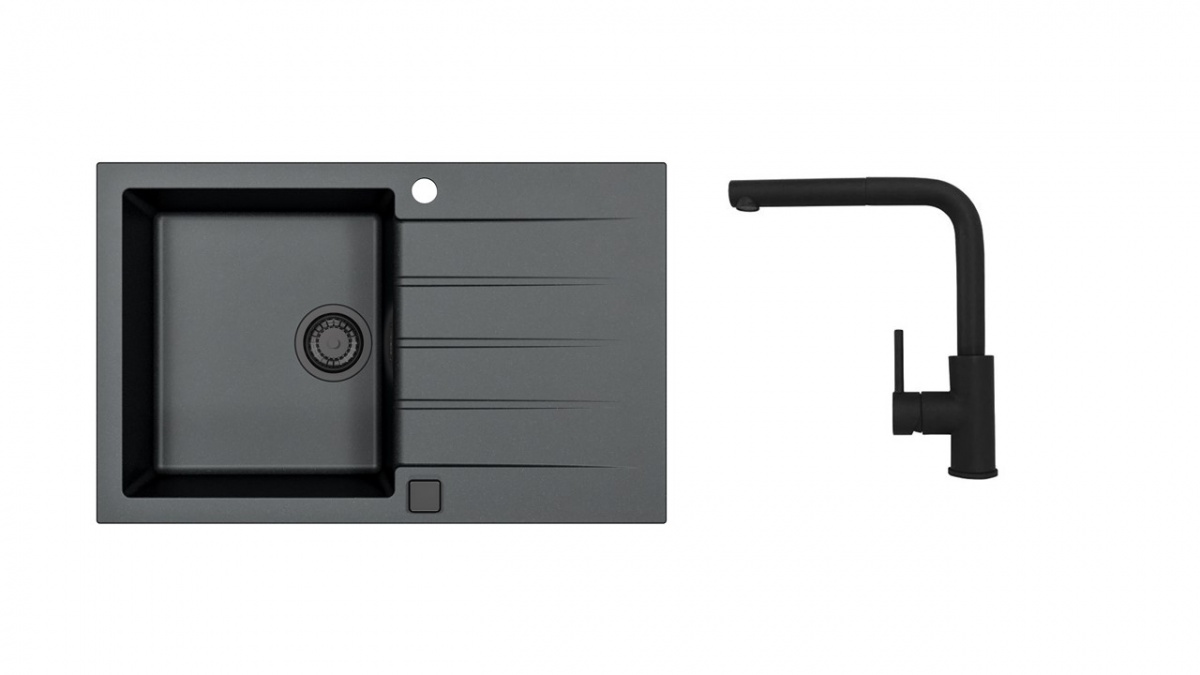 kuchynský SET : čierny granitový drez s čiernou batériou