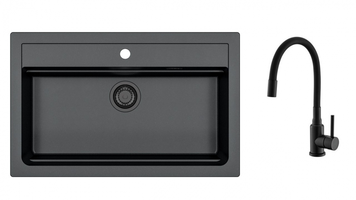 kuchynský SET : granitový čierny drez s čiernou batériou