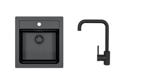 kuchynský SET : granitový čierny drez s čiernou batériou