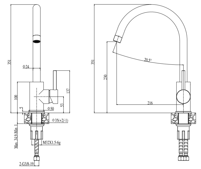 - úsporný sifon s odbočkou na umývačku riadu