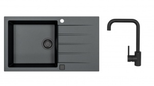 kuchynský SET : granitový čierny drez s čiernou batériou