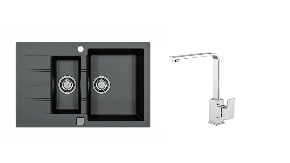 kuchynský SET : granitový drez s chromovou batériou