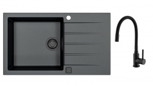 kuchynský SET : granitový čierny drez s čiernou batériou s flexi ramenom