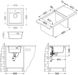 - úchyty na upevnenie drezu v balení