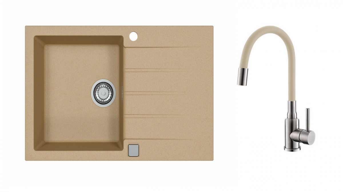 kuchynský SET : granitový drez s farebnou bartériou s flexi ramenom