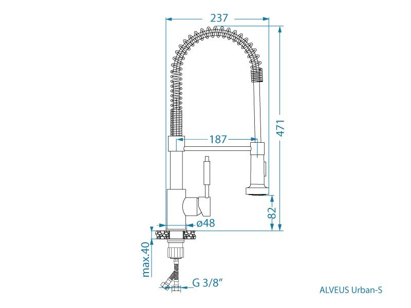 kuchynská vodovodná batéria s opleteným mobilným ramenom