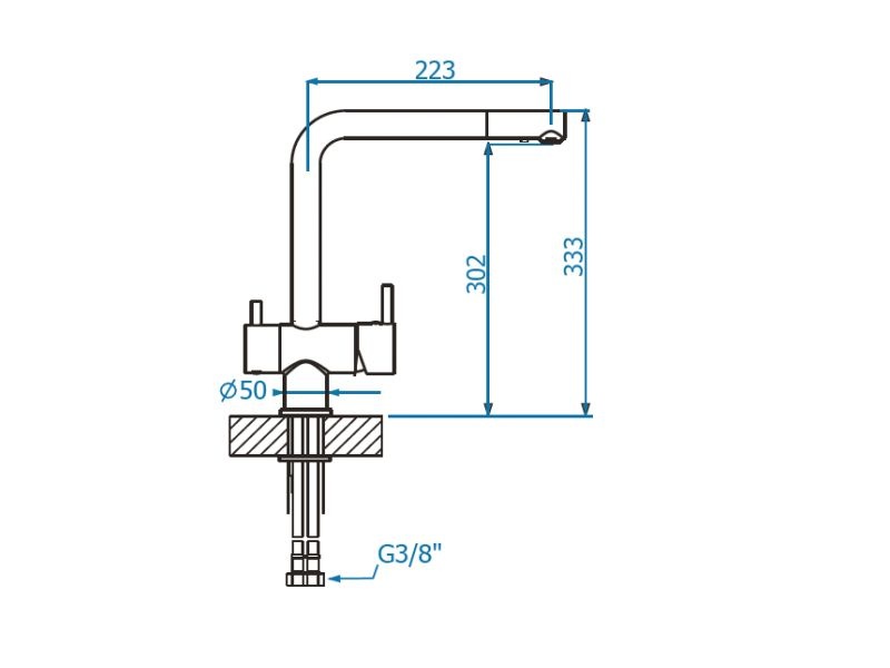 ▪ Táto batéria je navrhnutá na pripojenie k vodnému filtru, cez ktorý môže byť voda očistená od všetkých nečistôt, ktoré zhoršujú kvalitu a chuť pitnej vody. Pravá páka umožňuje použitie studenej a teplej vody na bežné domáce využitie, ľavá páka poskytuje čerstvú, čistú vodu na pitie.
