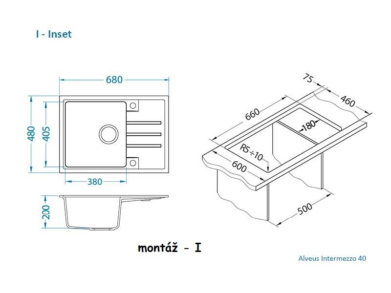 Inštalácia do skrinky so šírkou 500 mm - pre montáž I