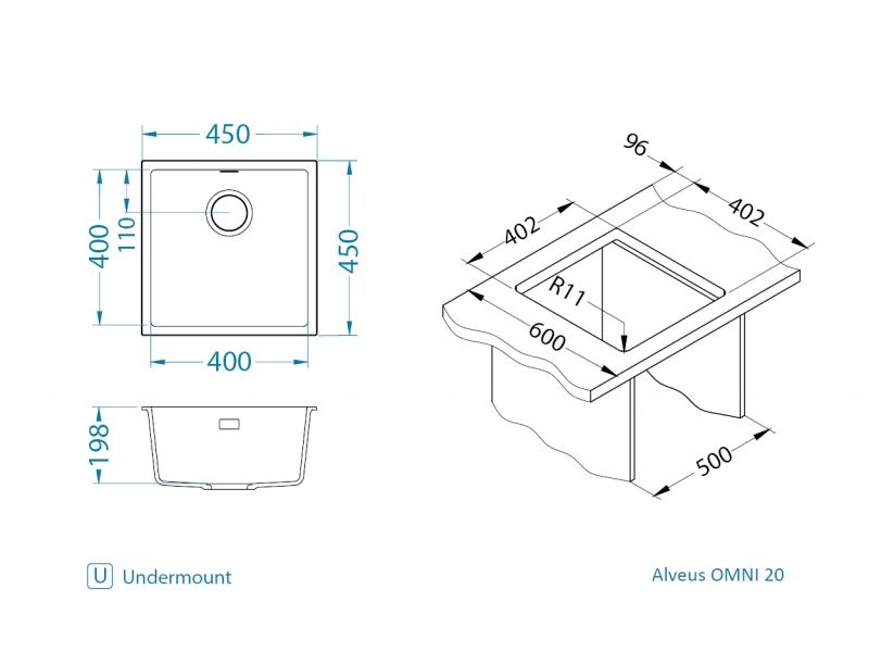 Inštalácia vrchná -I montáž alebo spodná montáž- U