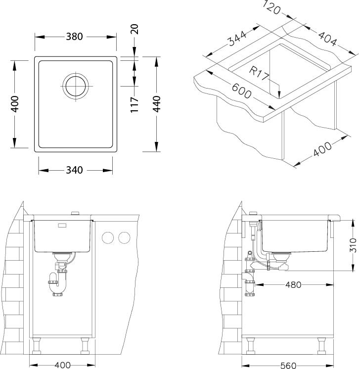 - úchyty a tesnenia na upevnenie drezu v balení