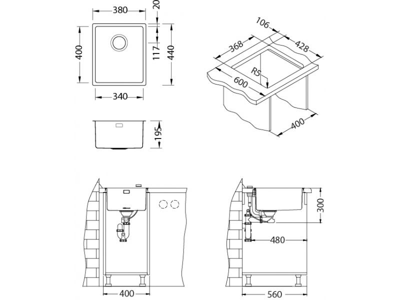 kuchynský nerezový drez určený pre montáž do roviny alebo zhora pracovnej dosky