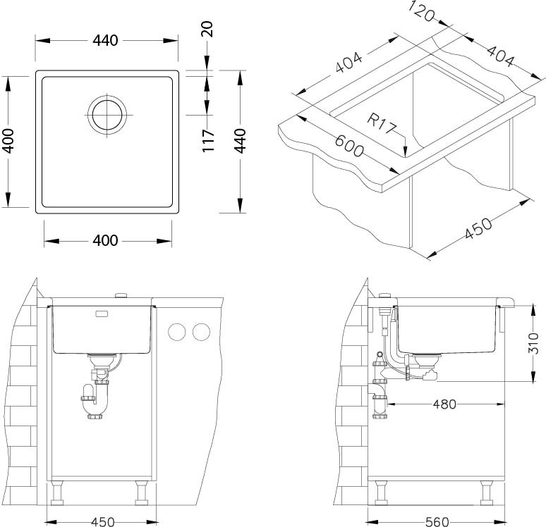 kuchynský nerezový drez určený pre montáž do roviny alebo na montáž zhora pracovnej dosky