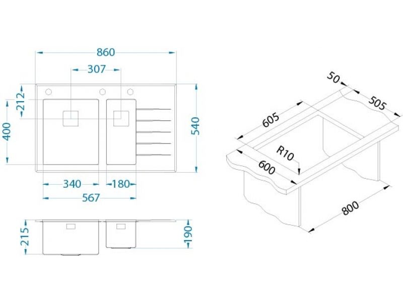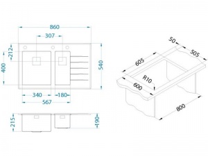 Vstavaný drez, vaničky vľavo