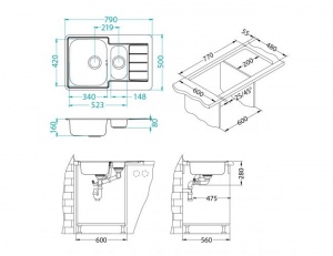 - úchyty a tesnenia na upevnenie drezu v balení