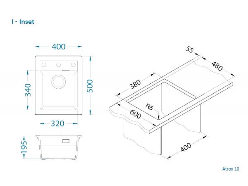 Inštalácia do skrinky pri montáži: I- šírka 450 mm
