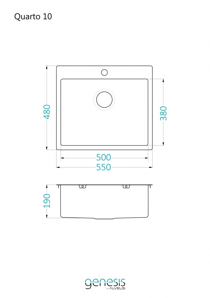 Vstavaný drez s mopžnosťou montáže zhora - S alebo do roviny - F