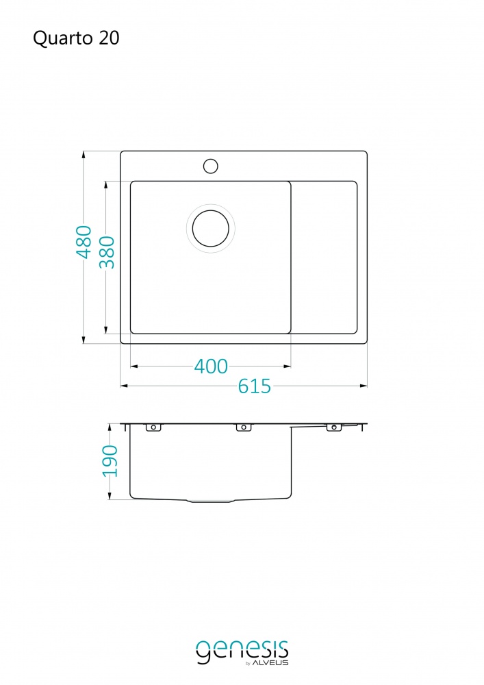 Vstavaný drez určený na montáž zhora - S alebo do roviny - F
