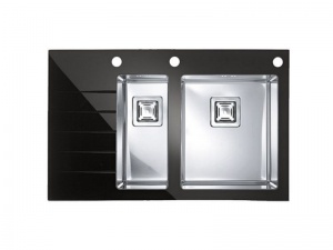 kuchynský sklenený drez s nerez vaničkami - pravý