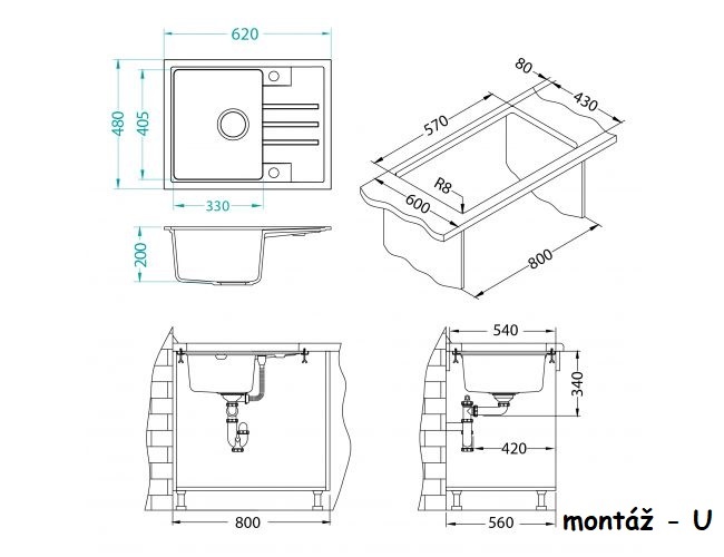 a s odbočkou na umývačku. /pre úsporu miesta/