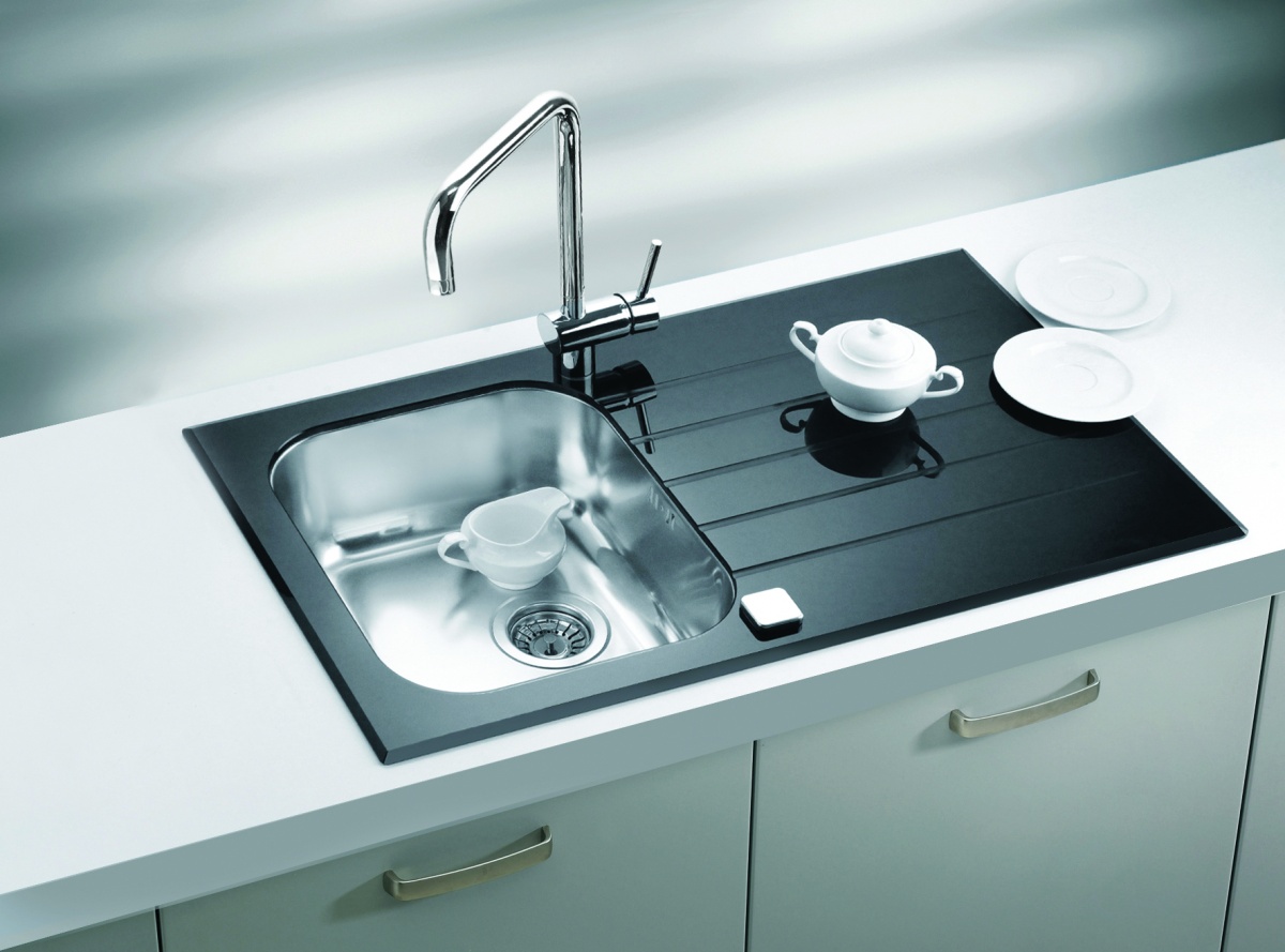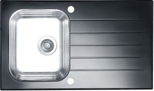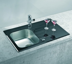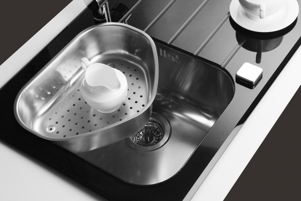 kuchynský sklenený drez s nerez vaničkou - čierny