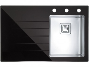 kuchynský sklenený drez s nerez vaničkovou - pravý