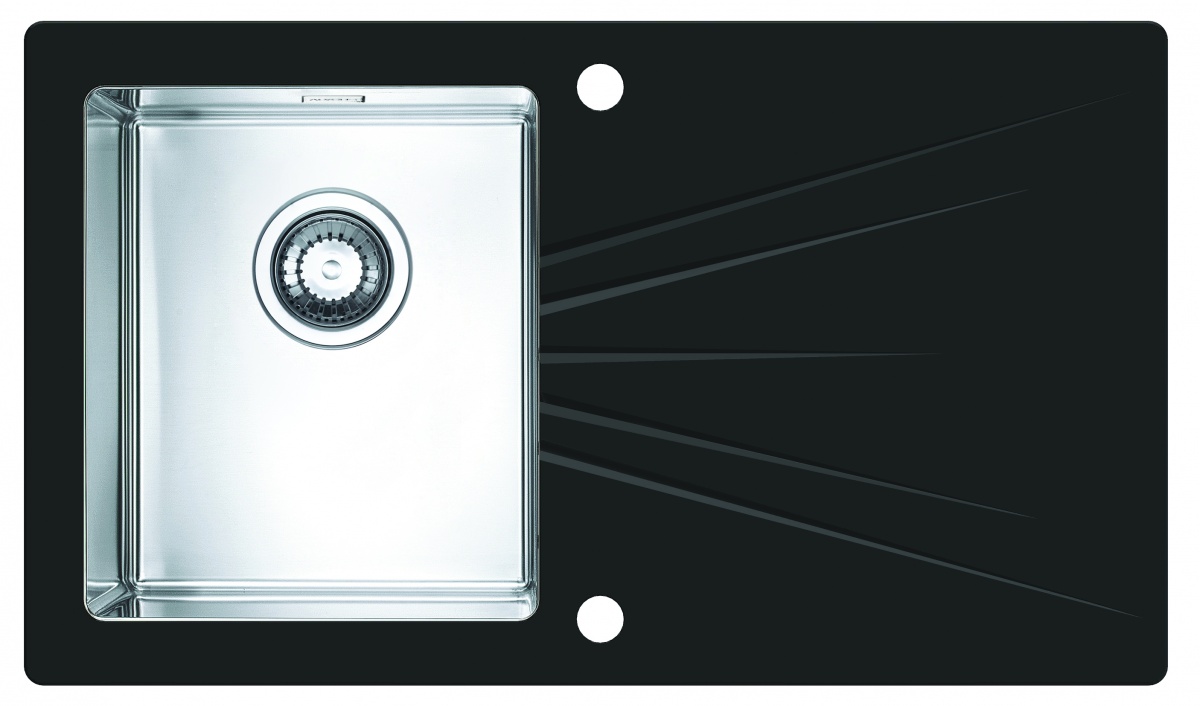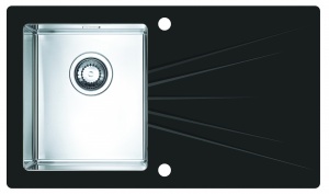 kuchynský sklenený čierny drez s nerez vaničkou na ľavej strane