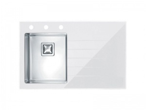 kuchynský sklenený drez s nerez vaničkou - ľavý