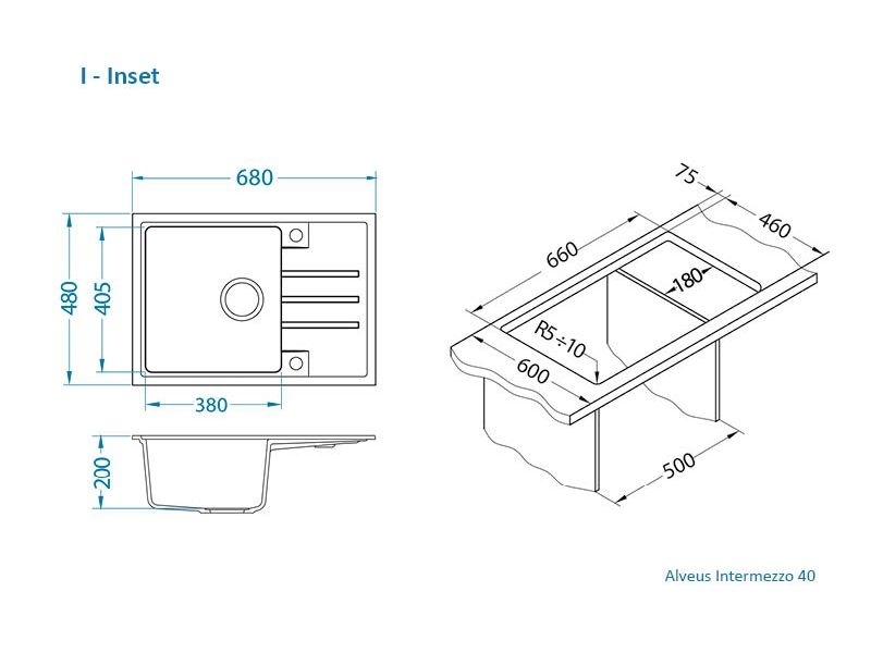 Inštalácia do skrinky so šírkou 500 mm - pre montáž I